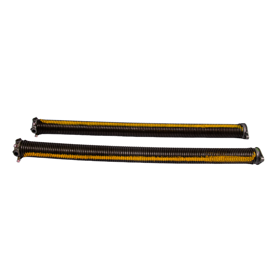 Torsion springs are mounted on a pole above the garage door and are an essential part of lifting the door. The torsion spring tightens when the door is closed and unwinds on opening.